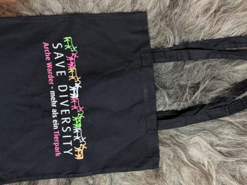 Jetzt den Stoffbeutel der Arche Warder bestellen. Der schwarze Baumwollbeutel ist ca 38 cm x 41 cm groß.